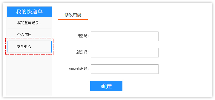 2、用戶中心點(diǎn)擊【安全中心】,進(jìn)入密碼修改頁面,輸入原密碼以及新密碼,點(diǎn)擊確認(rèn)按鈕即可。