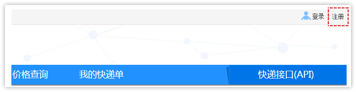第1步:打開快遞網(wǎng),點(diǎn)擊頁(yè)面右上角的"注冊(cè)"。