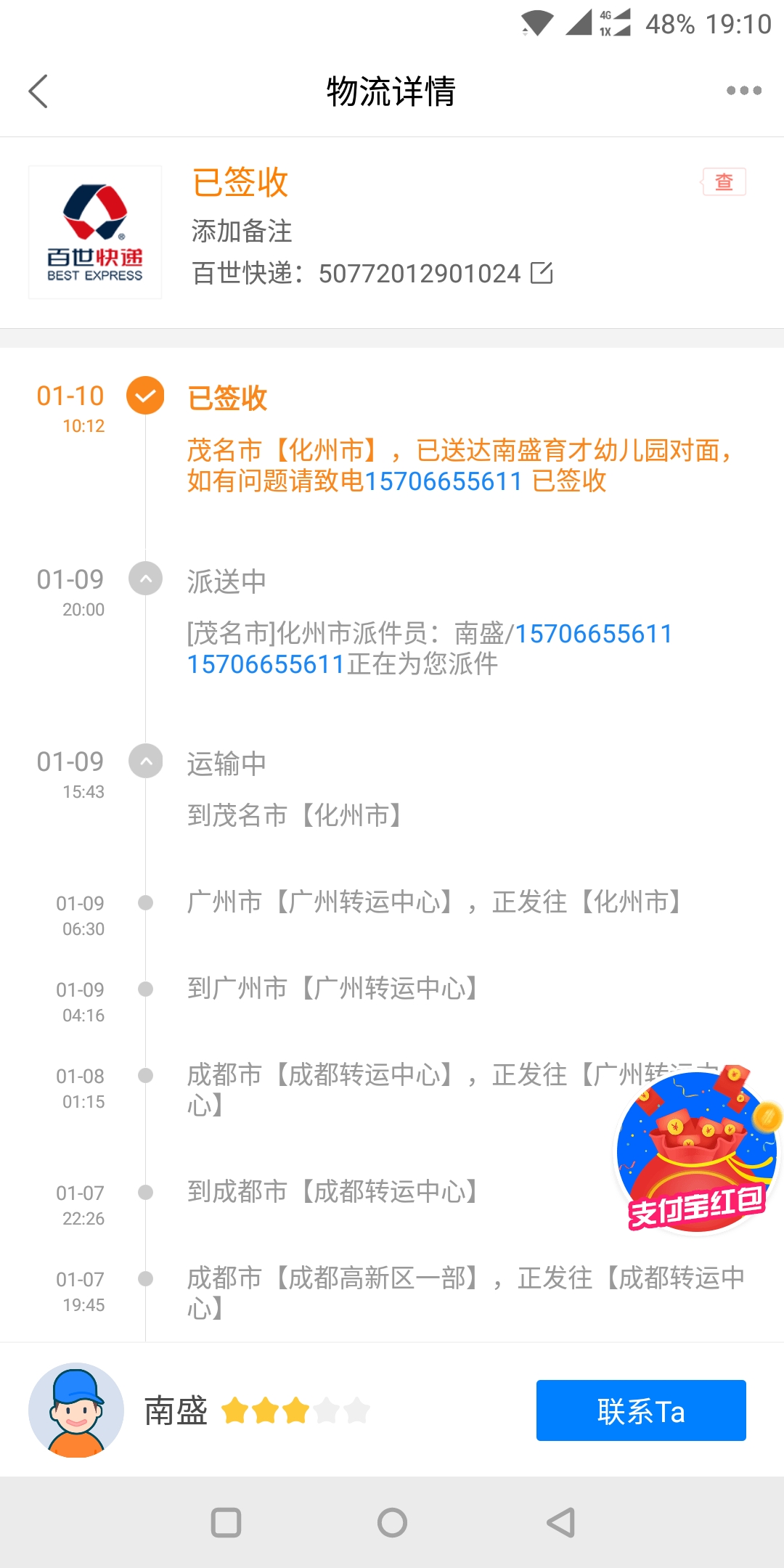 六天還沒送到,垃圾百世快遞公司,下次不會用了